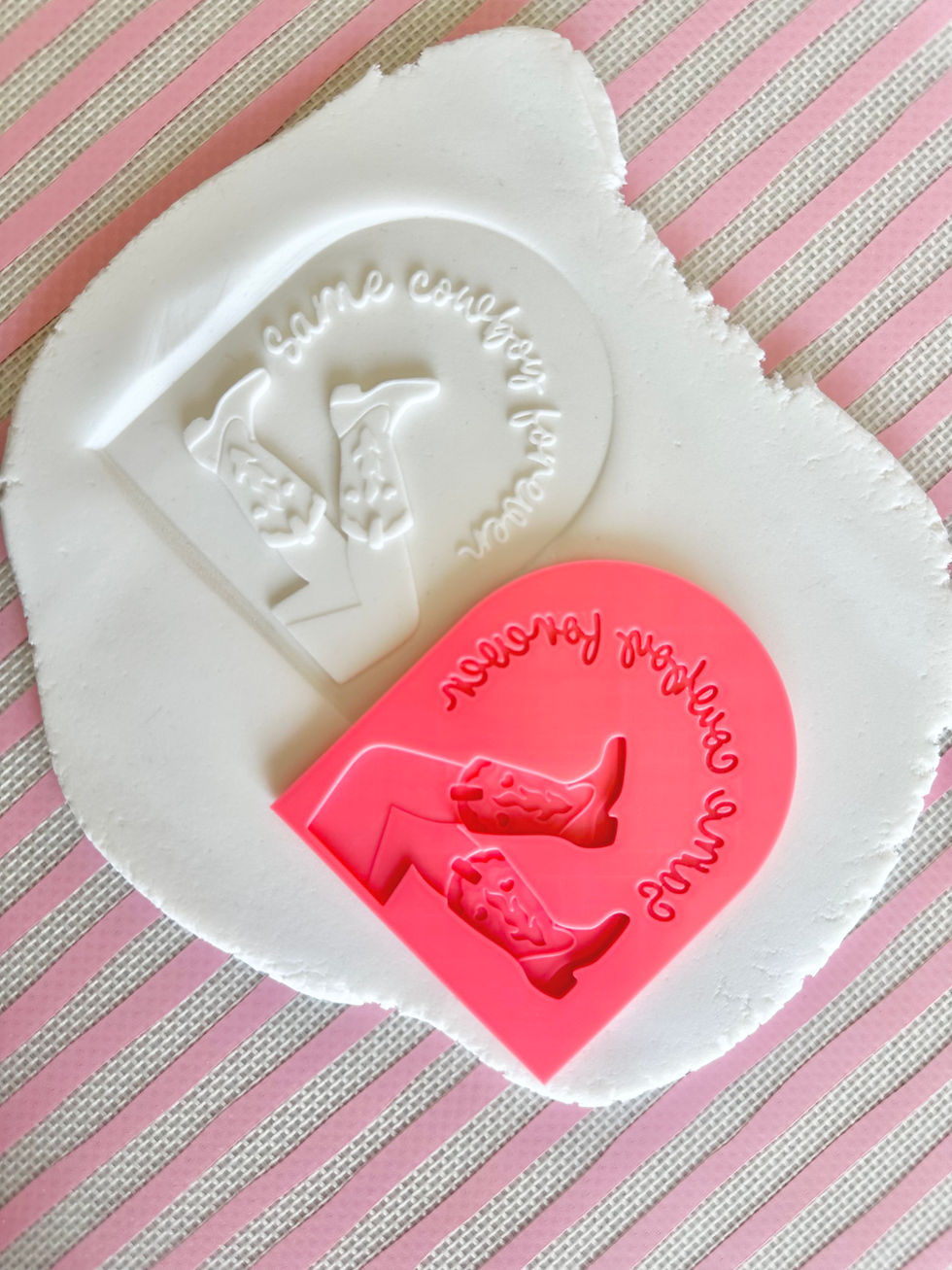 Same cowboy forever with cowgirl legs debosser with matching arch cutter