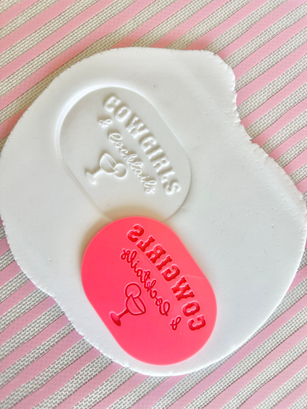 Cowgirls & cocktails debosser with matching oval cutter